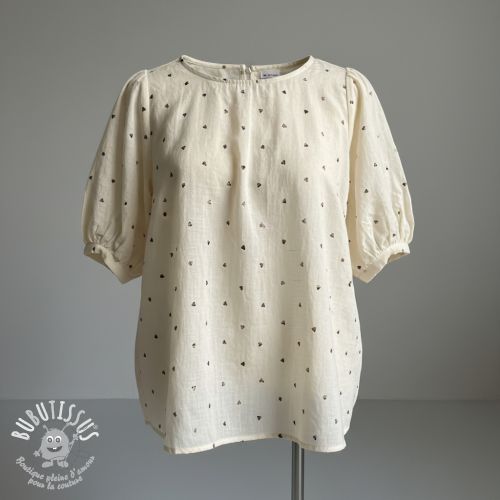 Viscose lin FOIL Hearts ecru
