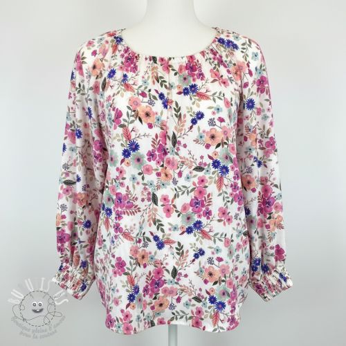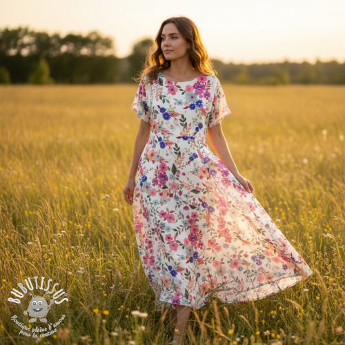 Viscose LUREX Tossed flowers white digital print
