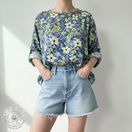 Viscose SATIN Blue flowers digital print