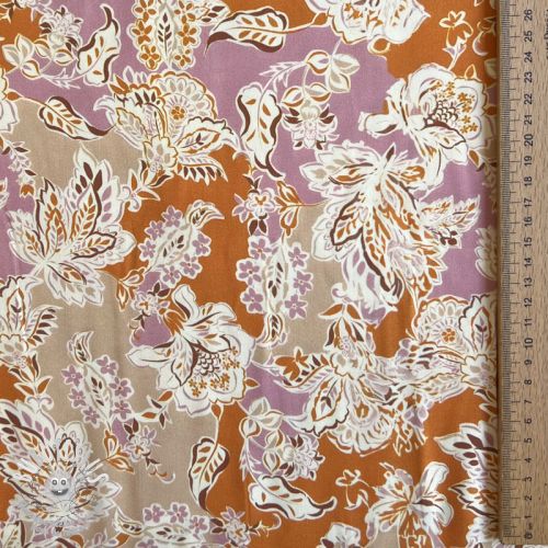 Viscose SATIN Flowie Noe orange digital print