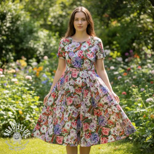 Viscose SATIN Old fashion flowers digital print